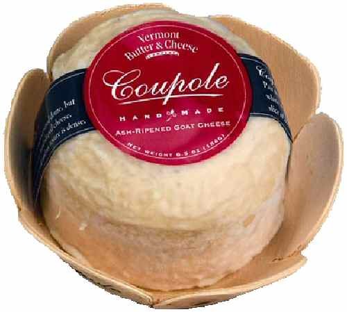 Coupole is a pasteurized goat's milk cheese with a unique shape and appearance. Vermont Butter and Cheese Company combined the technology of the Bijou and Bonne Bouche and the result is a milder cheese that has a dense and very creamy texture, especially the center, a sweet rind with a yeast flavor that increases as the cheese ages.